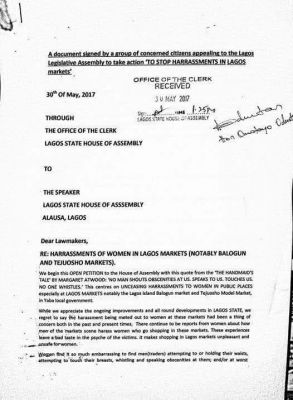 A group of women residing in Lagos, have petitioned the state house of Assembly over the continued harassment faced by women in the state from male traders at most Lagos markets, particularly Balogun and Tejuosho market. The petition was submitted yesterday May 30th. Part of the petition reads: