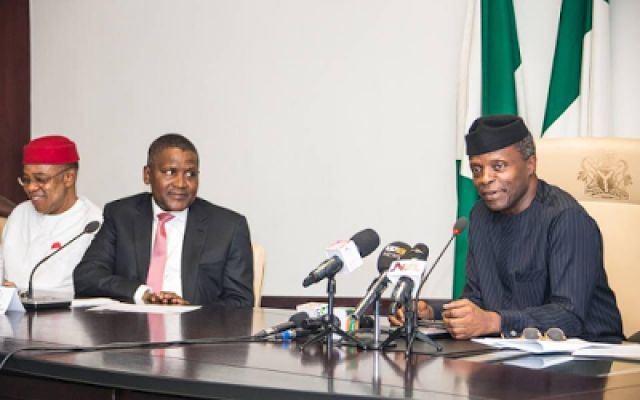 Acting President Yemi Osinbajo yesterday inaugurated the 36-man board members of the Nigeria Industrial Policy and Competitiveness Advisory Council at the state house Abuja. Among those who were inaugurated into the board include billionaire businessman Aliko Dangote, Atedo Petrside, Minister of Power Works and Housing Babatunde Fashola amongst others. See the full list of the members of the council after the cut...