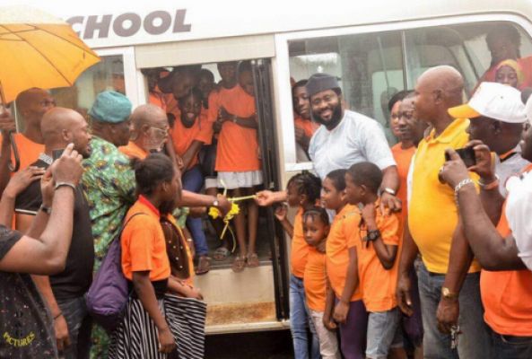 Nollywood actor/ director turned politician, Hon. Desmond Elliot, who is representing Surulere 1 Constituency at the Lagos State House of Assembly, donated the bus which will be used to convey students from his constituency to school for free. He shared photos of the bus on social media with the caption;