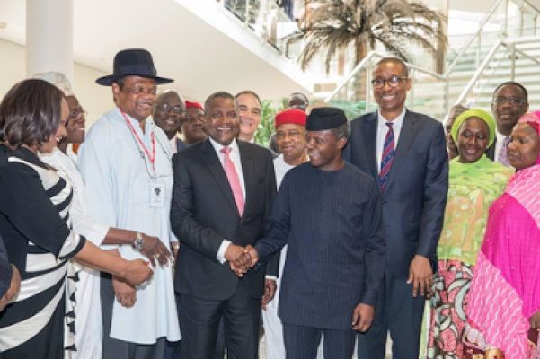 Acting President Yemi Osinbajo yesterday inaugurated the 36-man board members of the Nigeria Industrial Policy and Competitiveness Advisory Council at the state house Abuja. Among those who were inaugurated into the board include billionaire businessman Aliko Dangote, Atedo Petrside, Minister of Power Works and Housing Babatunde Fashola amongst others. See the full list of the members of the council after the cut...